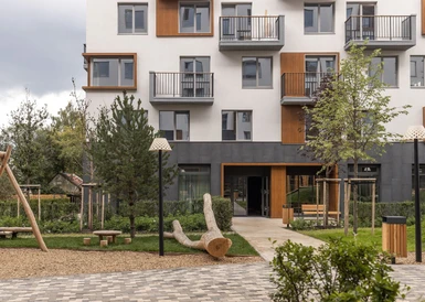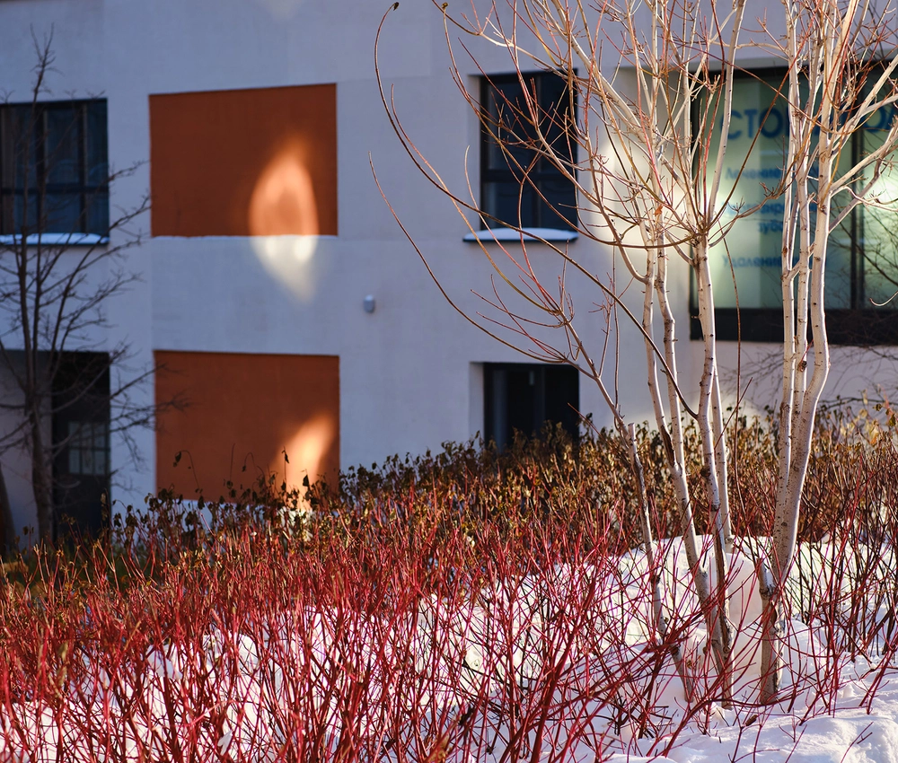 В домах Брусники прозрачные сквозные подъезды. Жители видят, что происходит внутри подъезда и снаружи во дворе. Вход находится на уровне земли. Это удобно велосипедистам, мамам с колясками и пожилым людям.