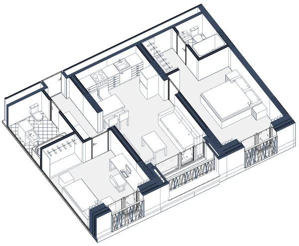 Мы сдаём квартиру с предчистовой отделкой. Это наиболее удобный для покупателей формат. Все грязные, пыльные, шумные работы мы уже выполнили: залили стяжку с шумо- и гидроизоляцией, выстроили ровные межкомнатные стены, развели электрику и слаботочку.