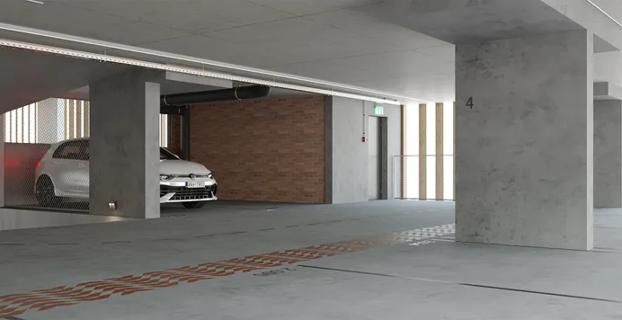 На первом уровне предусмотрены коммерческие помещения — здесь появятся магазины, кафе и другие полезные сервисы для жителей района. Со второго по восьмой этажи — парковочные места. Паркинг подходит в том числе для маломобильных граждан: здесь продумана безбарьерная среда, и на каждый из восьми ярусов можно подняться на лифте. Объект оснащён системами безопасности, удобной навигацией и шлагбаумом, работающим от пульта.