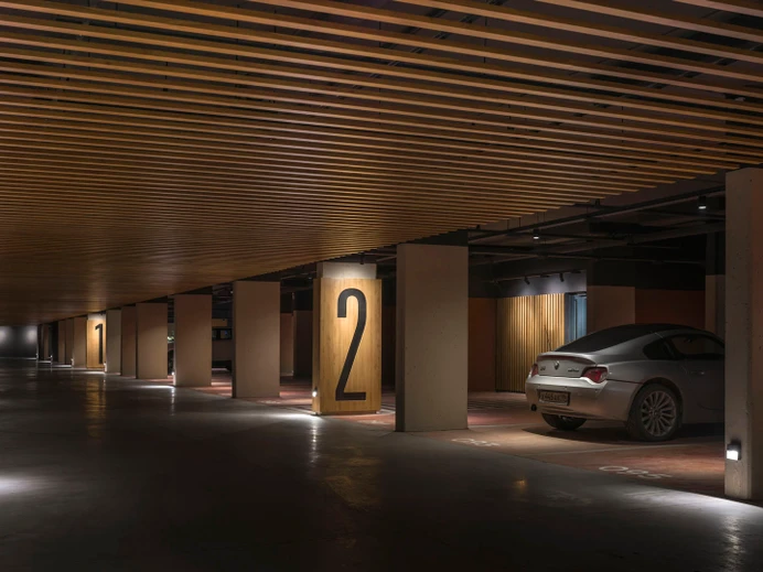 В подземный паркинг можно спуститься на лифте со своего этажа. Жителям удобно переносить тяжёлые вещи: пакеты с продуктами, детские коляски и технику. Из паркинга можно подняться на лифте сразу на свой этаж.